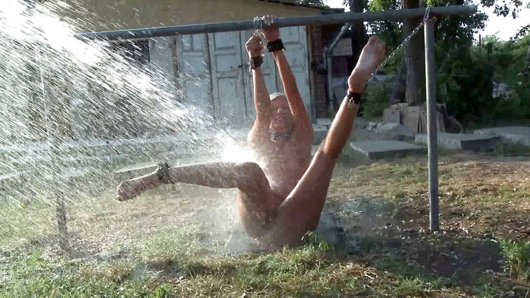 Sexy sub Bianca get dominate with water humiliation by sadistic dude outdoor