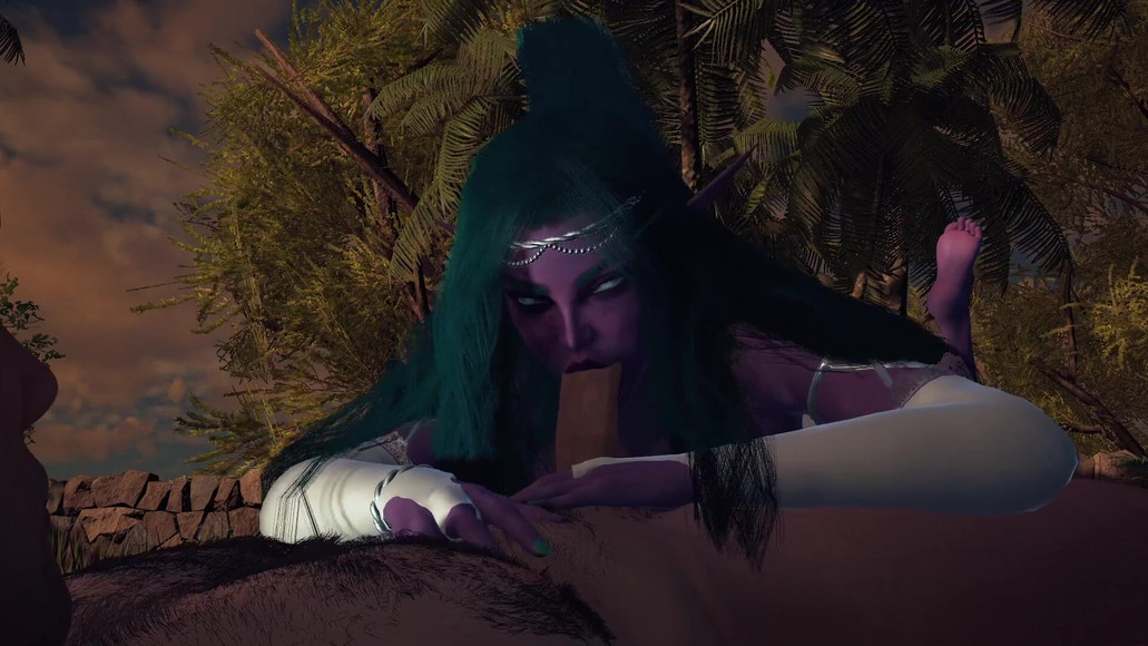 Hot elf princess with blue skin gives a deep throat Blowjob In POV. Sucking cock close up. Night Elf blowjob.