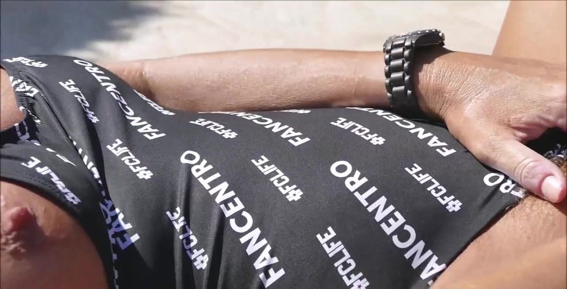 V plavkách mého fancentra, prstění u bazénu vedle veřejného bazénu.