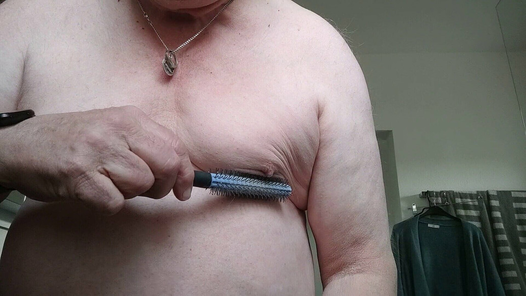 Playing with my man boobs before dressing