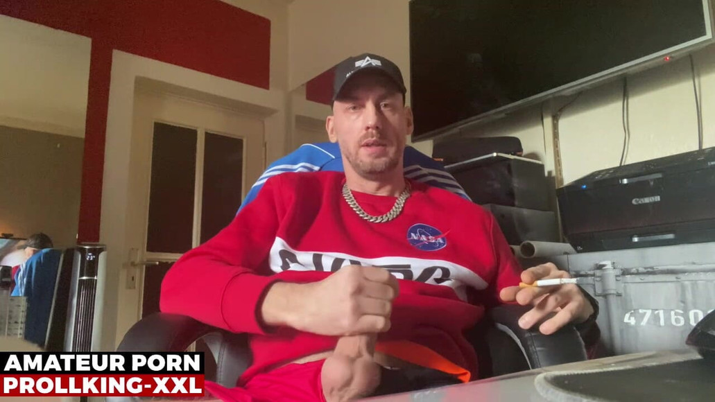 Prollking XXL plays with his thick cock in sports clothes, sneakers & white socks. He has a new toy - his electronic cock pump makes his cock - up to 24.5 x 6 cm