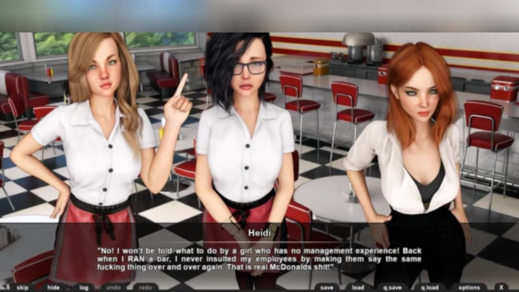Three sexy waitresses and no customers. 3D porn cartoon sex