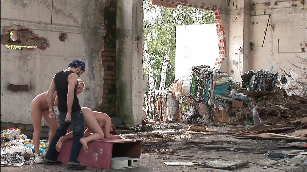 Blonde hotties gets pick up for anal gangbang outdoors