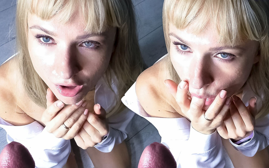 Lustful secretary passionately sucked the boss's big dick after work. The blonde brought the man to a powerful cumshot in her mouth and swallowed all the sperm after playing with it.