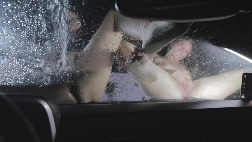 Two sexy Latinas masturbate and get horny when they see luxury cars, they get on the hood of the car, play and have fun, lots of spit and pee all over the car