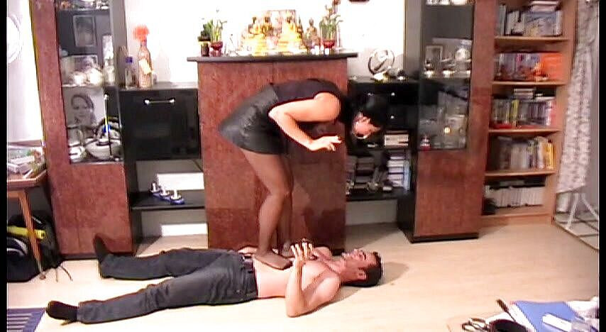 Slave Richie must serve the dominant Denisa as a floor mat for its Trampling; With her feet in stockings she stamps on his body around, climbs his neck and his face; She changes into the squatting position and her power shows it over him on it. Only her sight, Richie has through the effort come, seen up from below so; But Denisa wants to see him suffering, wants to see how resilient his body is.