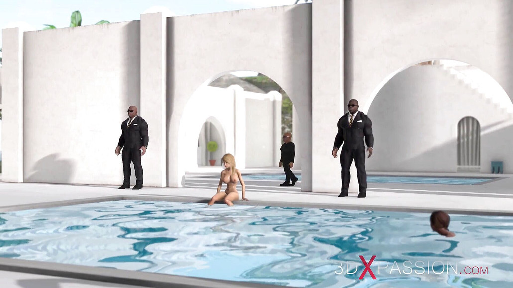 Two black bodyguards fuck hard young beautiful girls in an expensive villa.