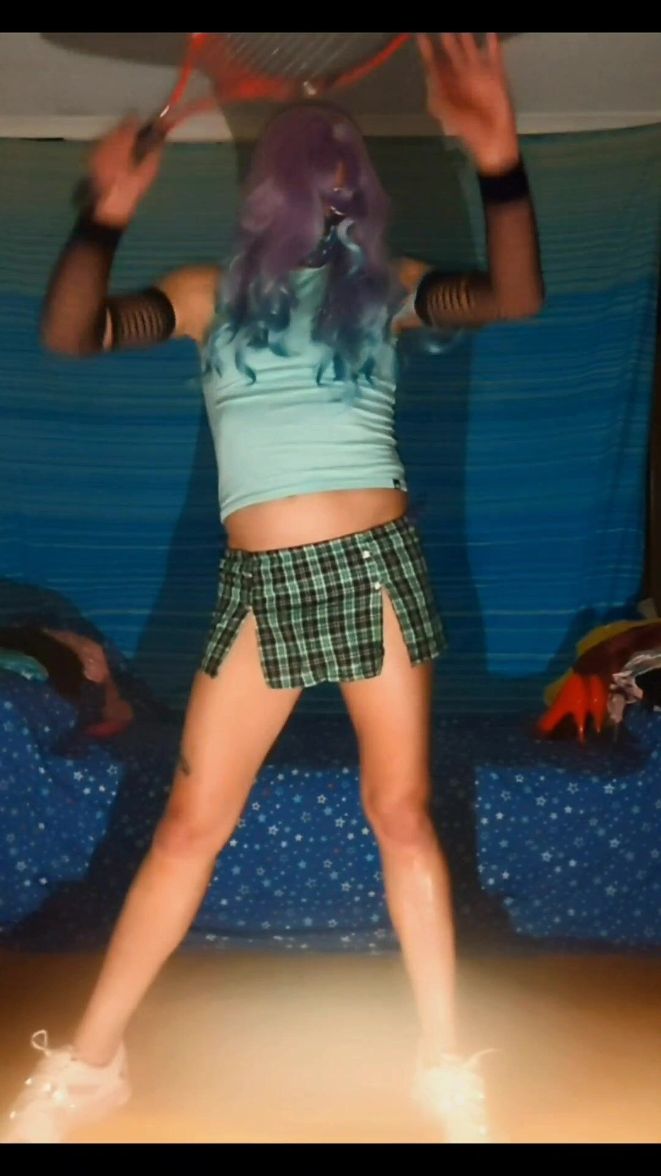 Green bikini,pink garter ,tennis skirt and bodysuit fun