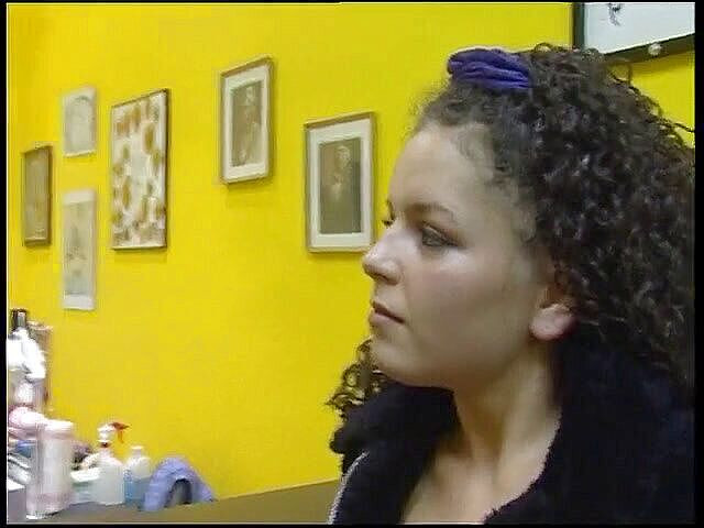 Fabulous brunette with curly hair wants a new tattoo on her perfect round ass.