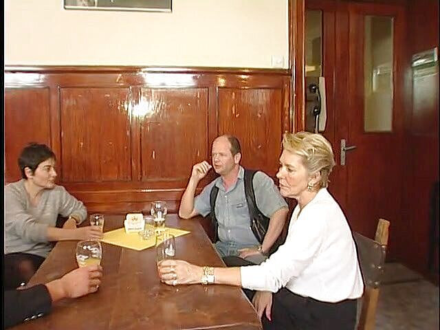 Fisting loose mature on the table and blowing a big load in her mouth.