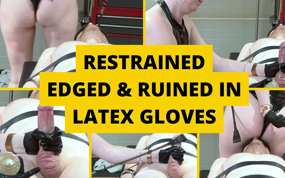 Rod is restrained on the bondage table and wearing latex gloves and a fleshlight I treat Rod's hard cock to a good edging over and over until eventually he can't take it anymore and cum leaks out of his cock, but it wasn't enjoyable for him as I ruined his orgasm as always.