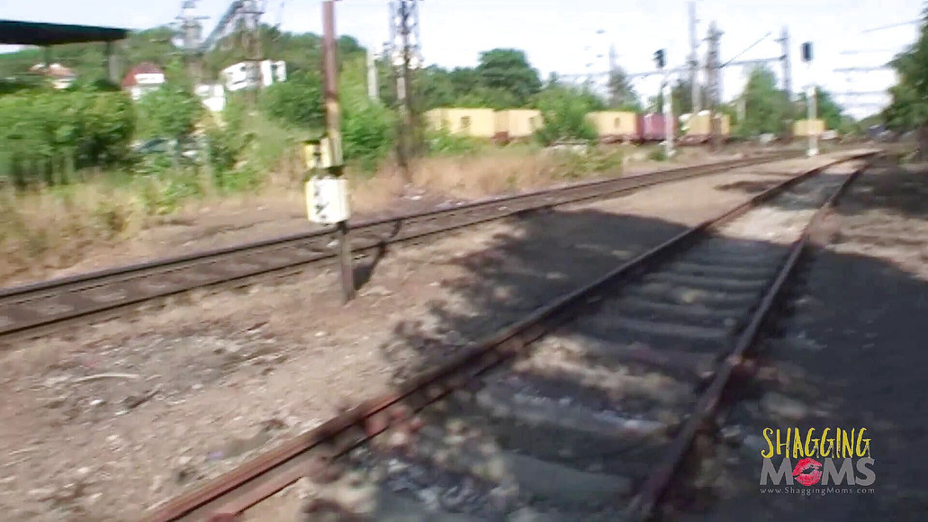 Mature brunette fucking two dudes on the rails and gets their loads in her mouth.
