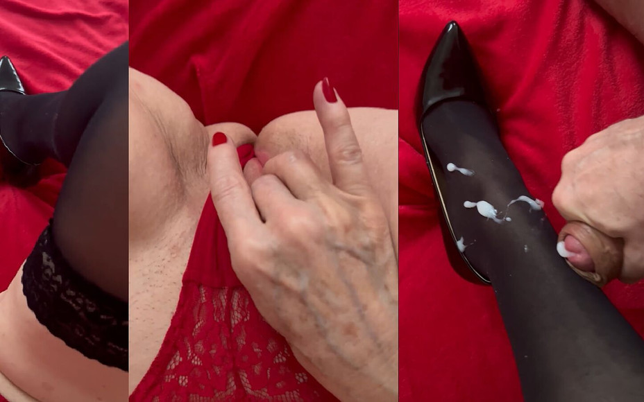 Delve into an exhilarating scene where a MILF clad in a red slip and black stockings, accompanied by her black high heels, engages in a sensual dance of submission and pleasure. As she passionately explores her own desires, her master stands beside her, his arousal heightened by the sight of her stockings and shoes. Their connection deepens as she tenderly licks his balls, creating a symphony of sensations. This video showcases the beauty of submission, trust, and the interplay between pleasure and satisfaction. Witness the climactic moment when the master finds release, leaving a testament to their passion on the MILF's black stockings and high heels.
