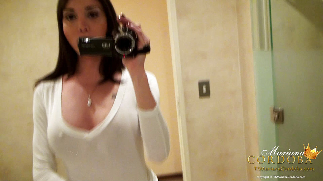 It is amazing to watch how Mariana Cordobas huge tranny cock can fit in this guys moth. Shot in POV over Marianas big tits you get to watch the cock gobbling action as his head pumps her rod.