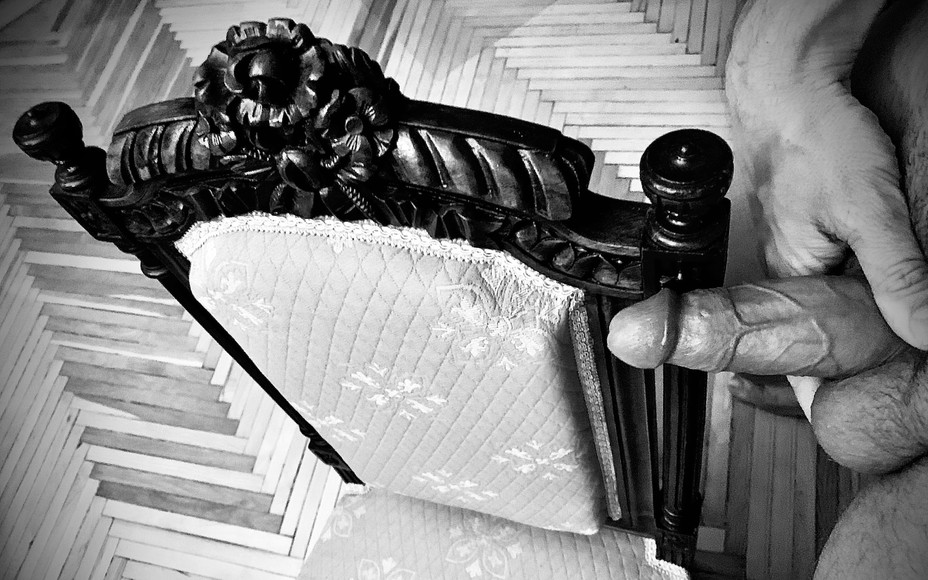 After work, Stanislav wants to rest. He decides to masturbate on a vintage chair, sits on it. At the end he powerfully cums on himself on the couch.