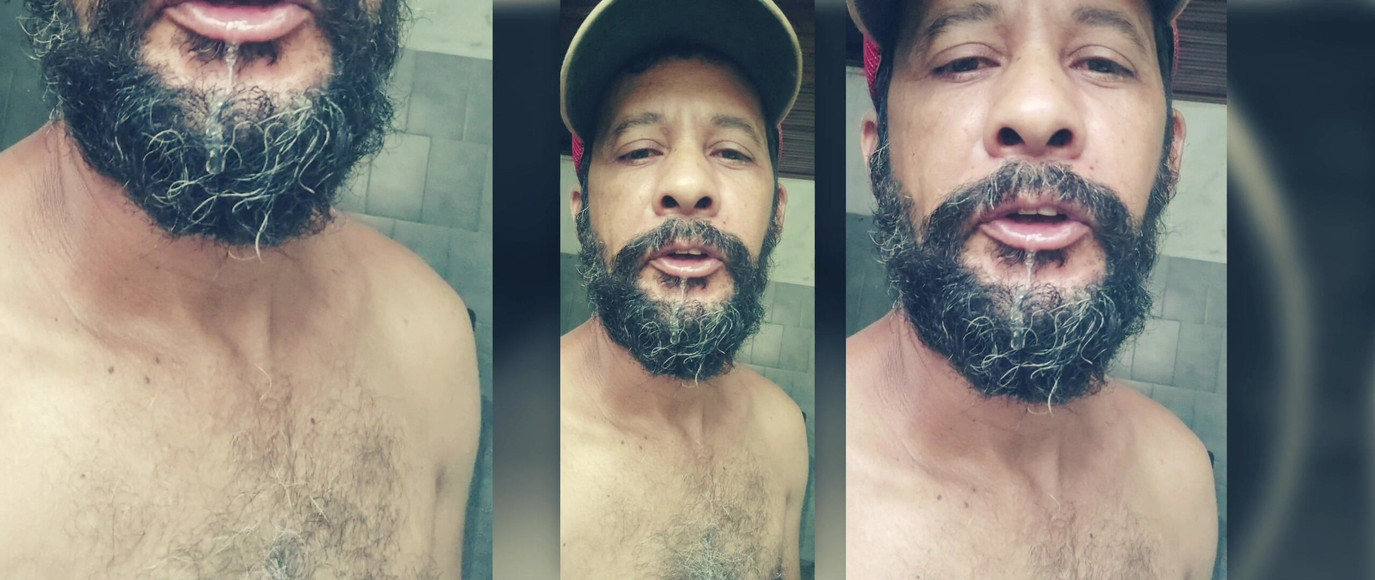 Spit play by a hairy pig male, foots fetish, hot body