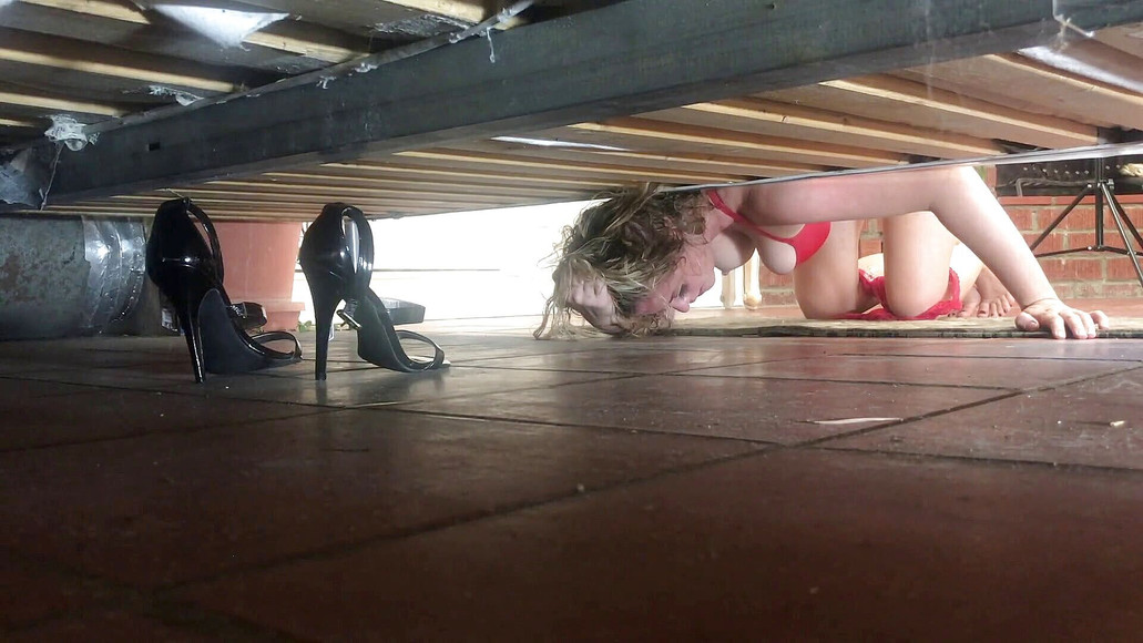 she was just trying to reach her shoes that were way under the bed for some reason when she catches her hair in gets herself really stuck under the bed, which is embarrassing because she is in her panties and the only person in the house to help is her stepson. he is a total perv and won't help though and says he would rather let her stay there. so she has to convince him with her pussy. he can have sex with her she says as long as he doesn't cum in her pussy, but of course he does....