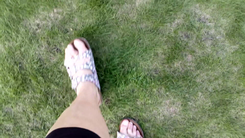 It's nice when the sun is shining - you can finally walk around in your slippers without socks. These things are already quite old and my toes and the sweat have already left clear marks in the footbed. I have to take a quick look at the vegetable patch and also walk around on the lawn in my slippers. My feet feel very comfortable in them and they are also very comfortable to wear