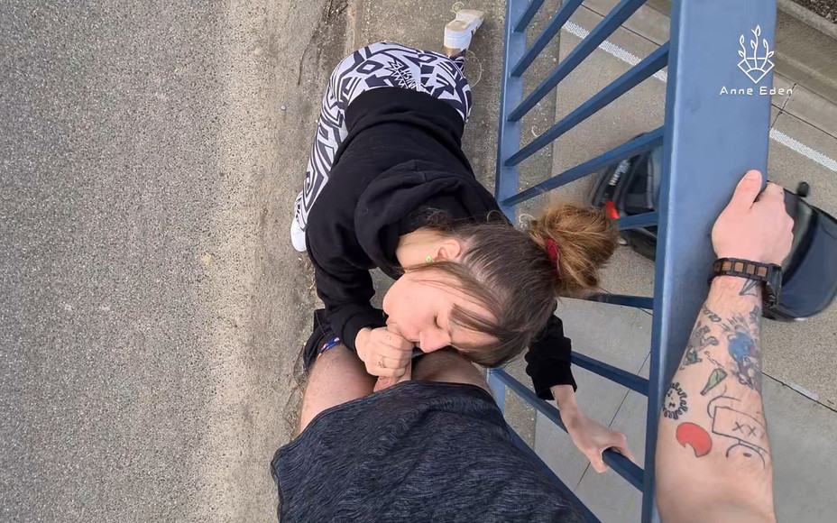 What a very risky and perverse fantasy. I'm extremely excited and nervous on the way to the highway bridge. It's a very busy road with a lot of traffic and two rest areas. But that makes it more exciting when I give you a blowjob over this busy highway. I kneel on the asphalt in front of you. Many cars drive past us, see me giving a blowjob and how I get the cum on my face and of course I have to show my tits to the drivers at the end.