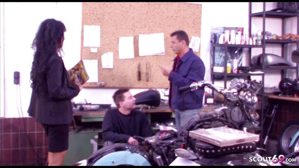 German Bike Bride is Fucked by a Mechanic Trainee in the Workshop