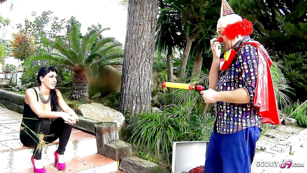 Clown comforts Sexy Skinny Teen Suhaila Hard with his Big Cock
