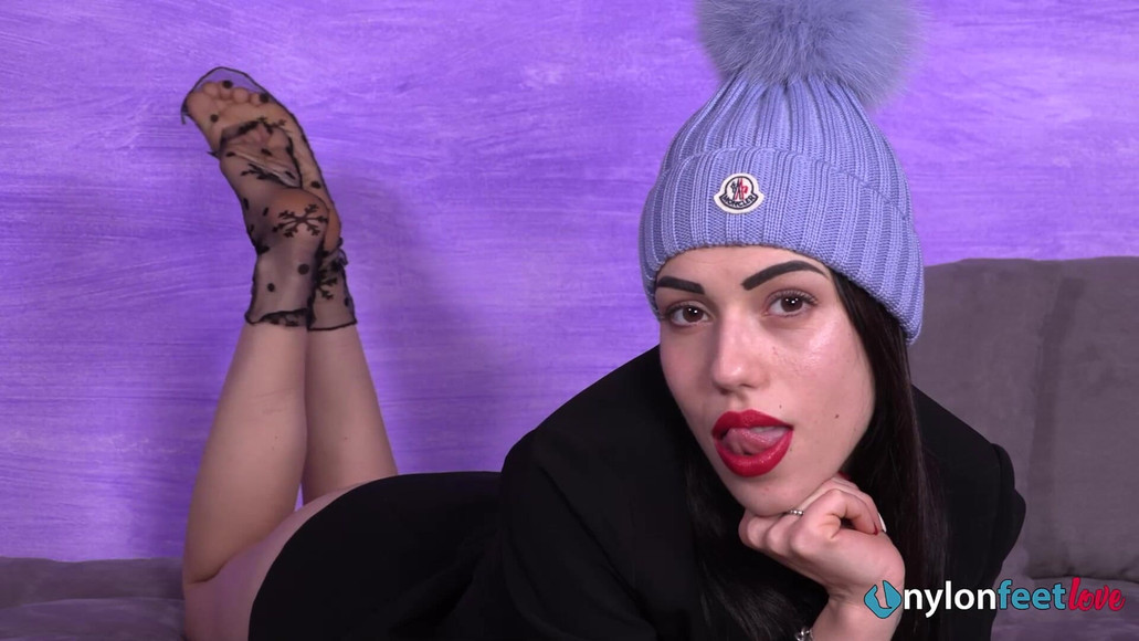 Gorgeous brunette Petra is so sexy it hurts, and looks hotter than a summer heatwave even when it's freezing cold outside. She exudes sexiness in a black jacket paired with a grey beanie with pom-poms on the end and a pair of black Moon Boot après-ski boots. The sexy brunette flaunts her slim, toned legs, takes off her boots and exhibits her delicious feet clad in embroidered nylon socks. She then lays on her stomach, allowing you to get a good look at her fabulous soles.