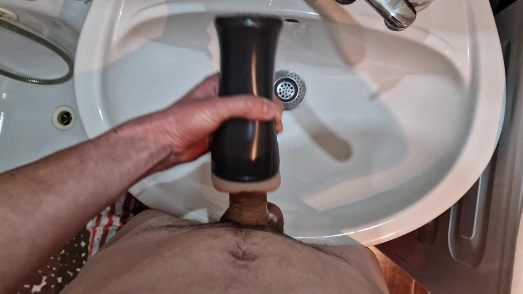 Rychlá ranní masturbace s falešnou kundičkou v koupelně