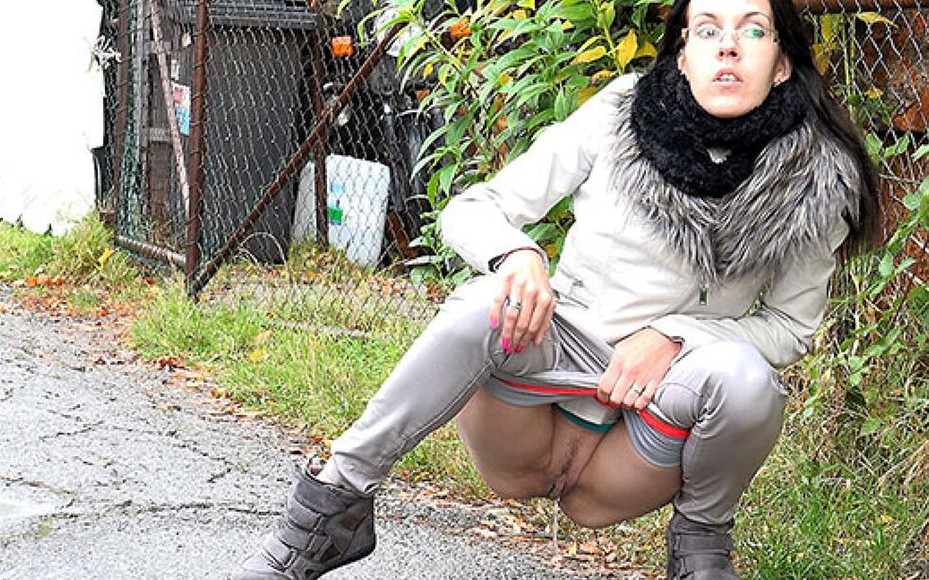 Got2Pee presents "Geeky Girls Pee Too" - part of the Puffy Network. Today on Got2Pee we have a cute geeky girl who is walking through a rundown part of the city. She really needs to pee before piss desperation sets in badly, so she stops and squatting to pee sprays her golden juices down onto the ground. Afterwards she wipes herself clean as she continues on her way
