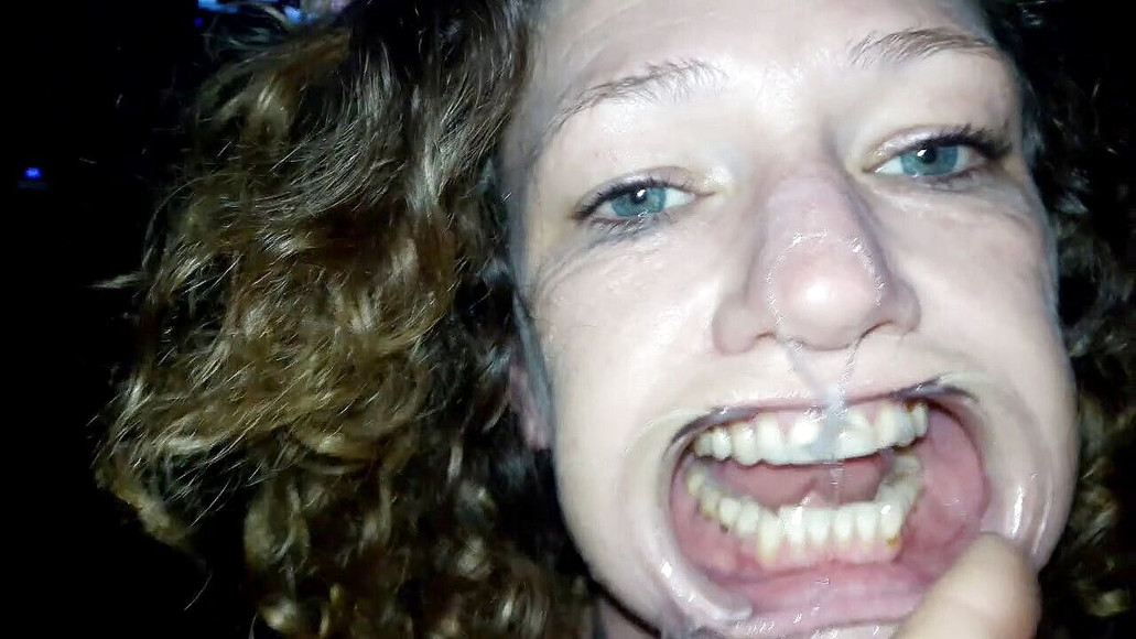 Girl friend using a plastic dental gag to keep mouth open. She sucks and deep throats cock.