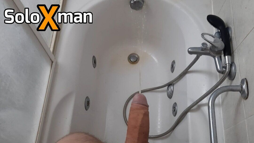 I wanted to pee like crazy, but everyone piss in the toilet. At the same time, I was horny, so I had an erection. I released my golden pee in the tub and it was strong! - SoloXman