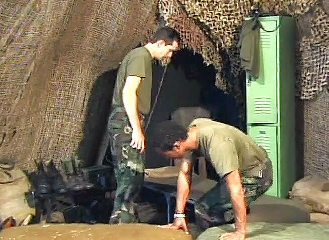 Military hunks having interracial gay sex in the barracks.