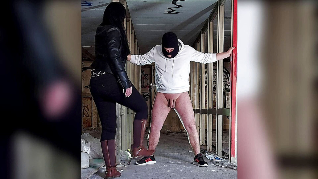 in the old factory my slave has to prove what he and his balls can stand for me.He gets with my boots so right what in his hanger and goes thereby often in the knees