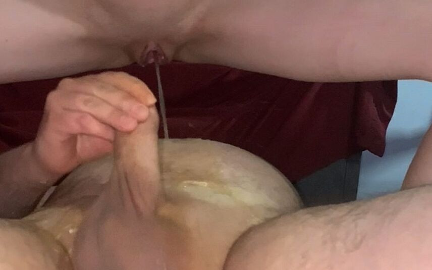A pretty little brunette had an urgent urge to urinate so she let her boyfriend take a nice big piss. Her boyfriend being a follower of urine was too excited so he masturbated filled with pee on his body and he came thoroughly!