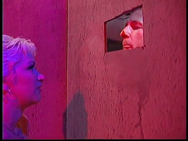 Amazing blonde slut blows a few cocks and swallows a glass of semen in the secret room while being fucked with a strapon.
