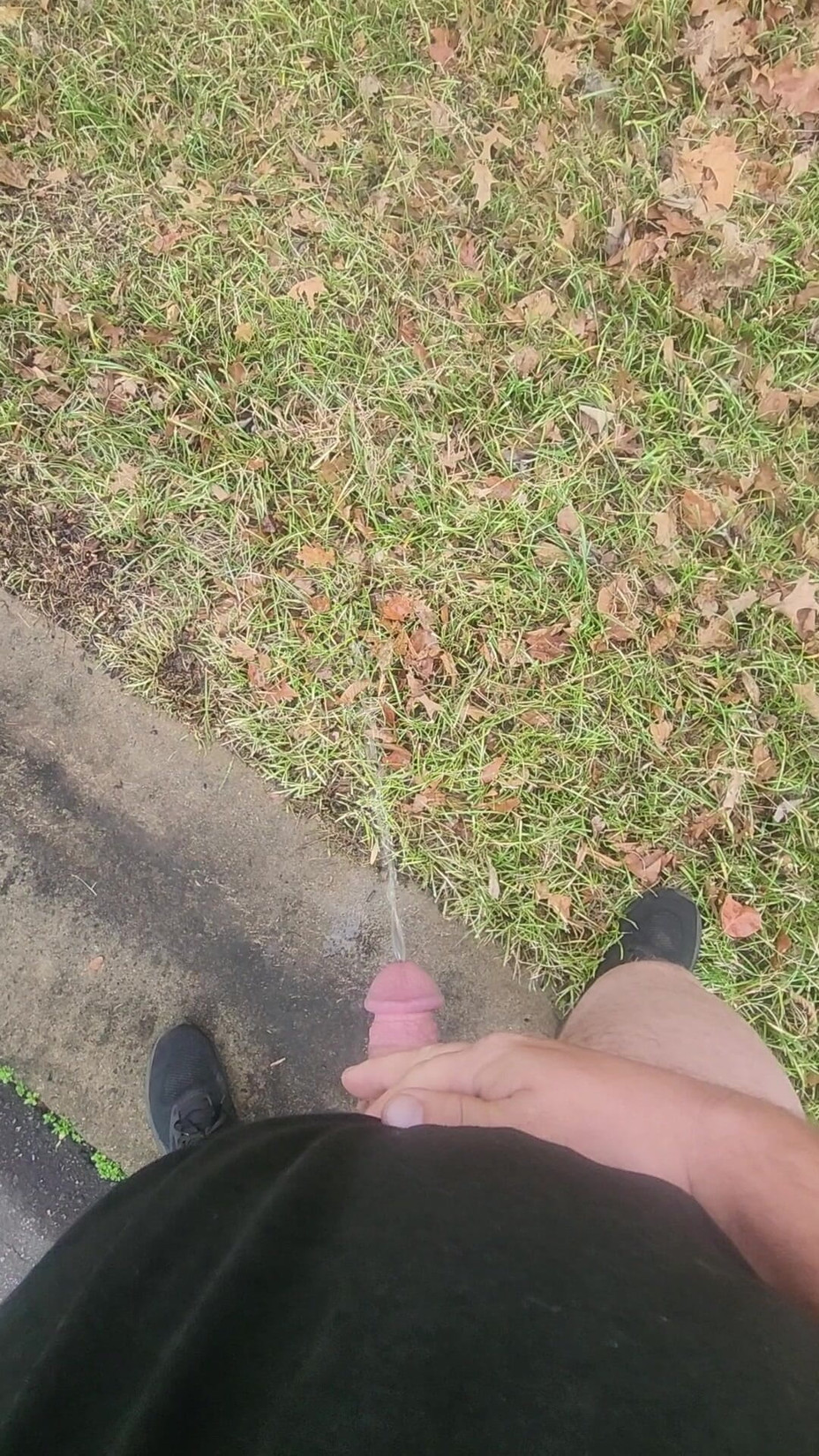 Took a break from driving at a rest area with a nice overlook. Had to piss and cum.