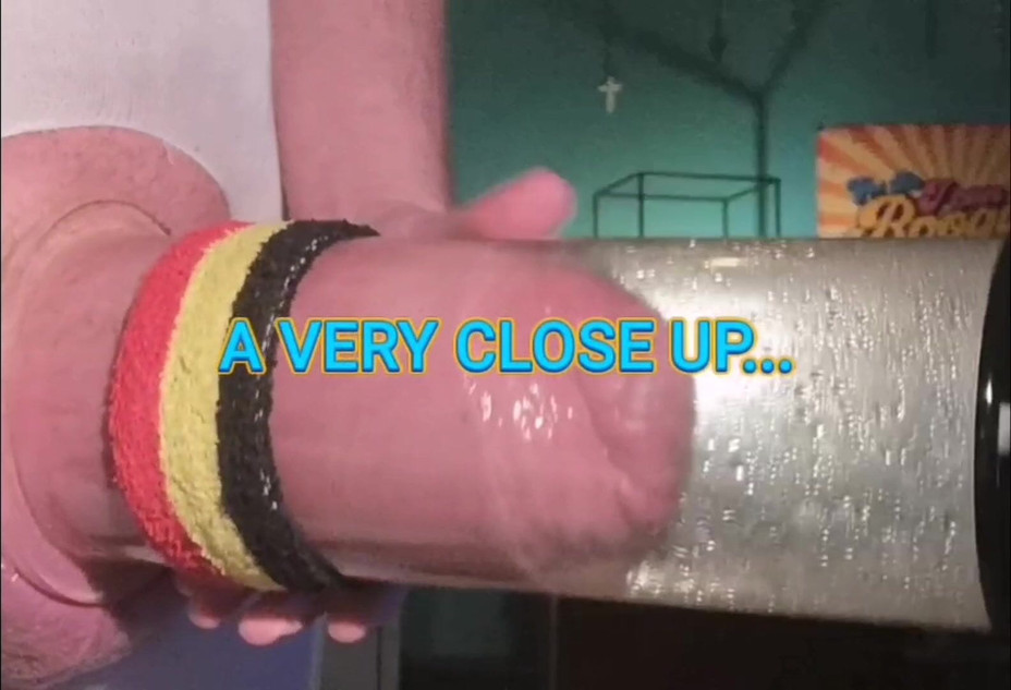 A very close up extreme pumping up my silicone cock with my tube size 4 x12inches