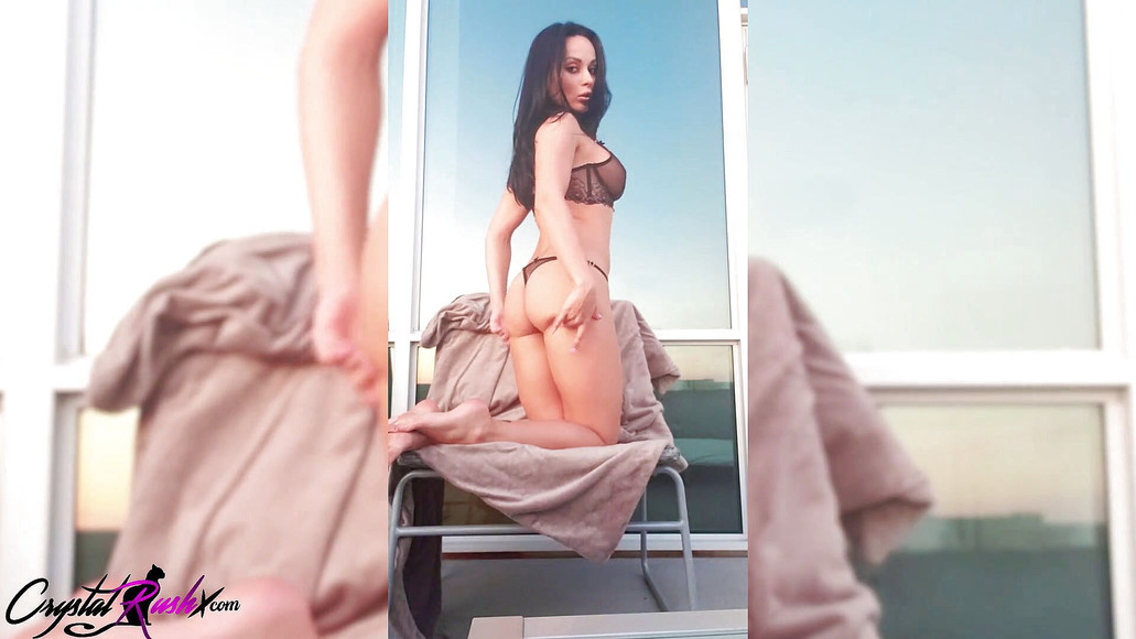 A hot porn actress came home in an excited state and decided to masturbate on the balcony of a tall building. This is a hot show with masturbation and teasing