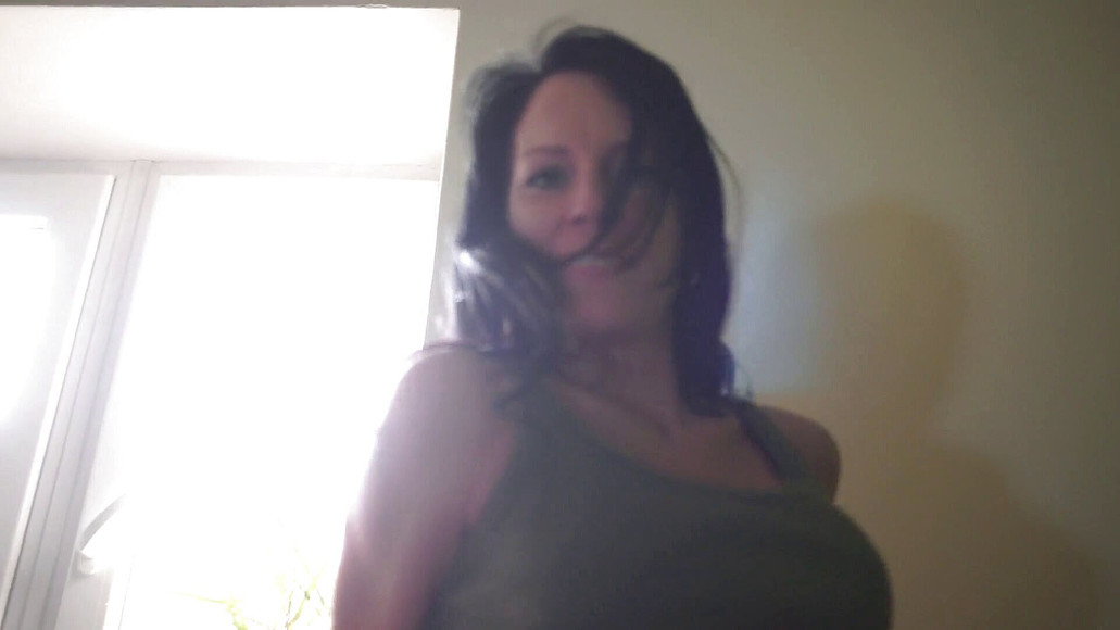 Staffy is a horny amateur chick that loves to show you her new silicone tits in the kitchen.