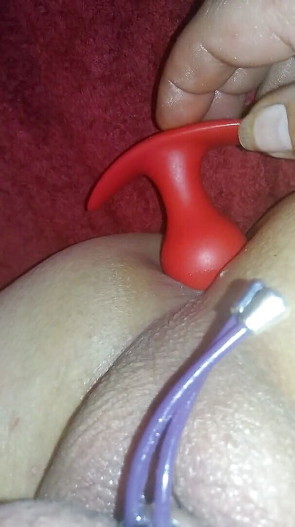 Gay enjoys his sex toys in the bedroom.