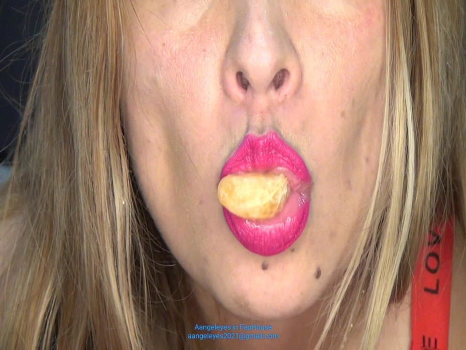Hi guys! I am very happy to be here again with you! How are all of you? I Hope very good! I have a new video very fun and crazy! For this video I have several beautiful and giant mandarin oranges, and there is nothing better than starting by feeling their citrus sensation deep inside my pussy!! After experiencing the refreshing acidity of the tangerine inside my always hot and wet pussy, it's time to swallow! So I open the mandarin orange into large wedges, and set the camera to the maximum zoom, for a huge close-up, now my face and inside my mouth take up the entire screen! I push those huge segments with my finger to my pink uvula and swallow them greedily, it's very sexy to ingest a mandarin orange that way, to feel these big bulges go down my throat makes me horny! I like to feel that inside my belly, on my waist, I have all that whole fruit, enjoy and many kisses!!