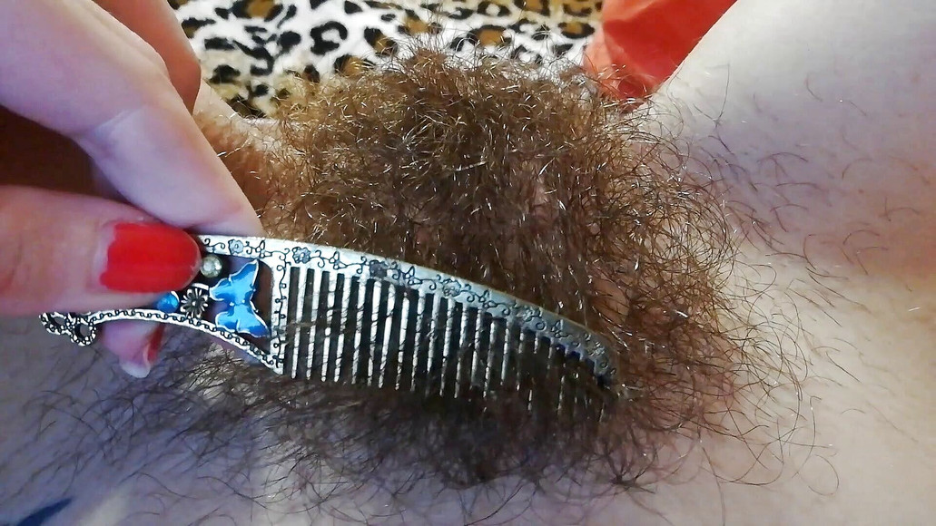 Close up video of me brushing my long pussy hair with a comb . its thick after 3 months