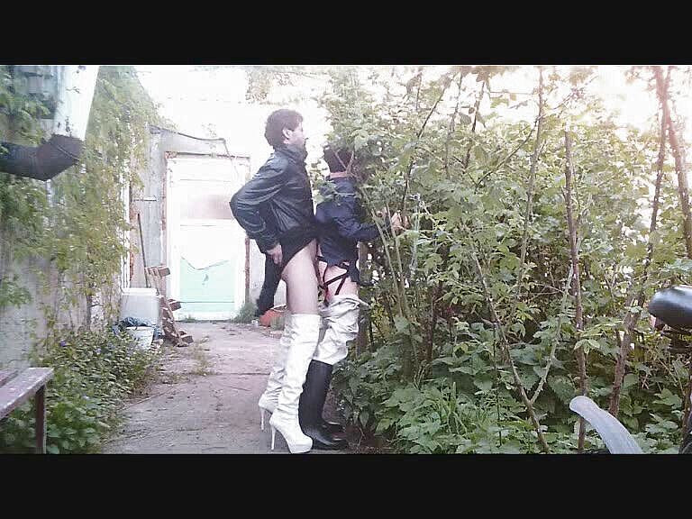 Today I put on my sexy white boots and skirt again and only blown my rubber doll outdoors and then fucked her beautifully in the ass.