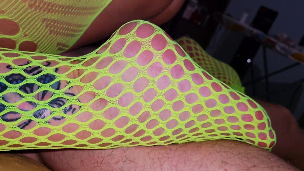 The stepmother got very excited, put on a fishnet bodysuit and gave herself to her stepson, he fucked her in her feet and pussy and finished on her ass