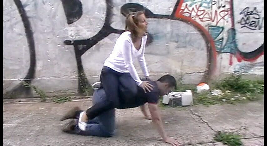 Melady and their slave Richie are away in a shabby area; It states solid, this already after short time its flat shoes have got extremely dirty of the rough street dirt; Richie must therefore lie down fast and make the doormat to it; It wipes its shoes off on his gown and because he lies so beautifully there, it pretends to be just whole on him on this; Richie just must remain lying on the hard stone floor and tramples them with their feet on him around; He still becomes about degraded, derided and sworn by it verbally all the time