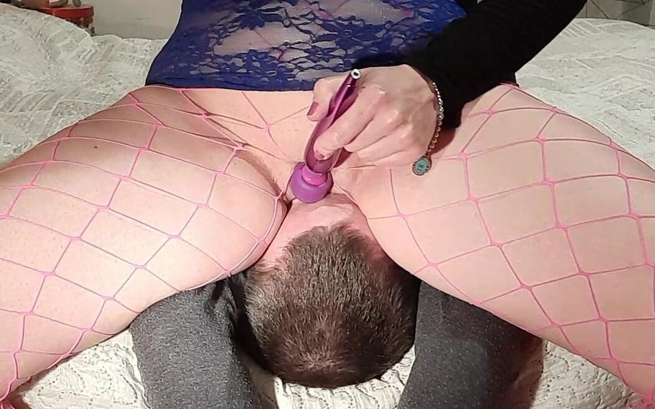 Goddess Stephanie is very horny and decides to use her slave's face as a sex object. Stephanie sits on his face and turns on the vibrator. Joe has his hands tied and is completely submissive to his goddess. Stephanie starts having fun... Joe after about 1 minute wants to go out to breathe but she doesn't let him out. Joe keeps fidgeting and gets out but she immediately puts him back under her pussy. stephanie gets more and more aroused by repeatedly rubbing on his face. Stephanie cums several times intensely on her slave's face.