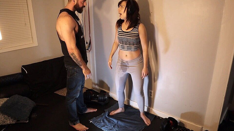 Part 2 Jess just changed her pants and Tony comes back in for round 2 making her squirt hard while shes trying to start her workout, giving her an intense leg shaking super wet squirting orgasm, leaving her soaked.