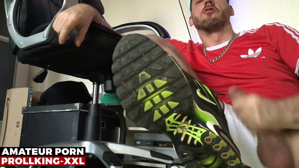Prollking XXL plays with his thick cock in sports clothes, sneakers & white socks. He has a new toy - his electronic cock pump makes his cock - up to 24.5 x 6 cm