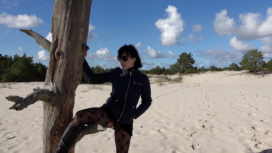 Wanilianna is wearing fetish crotchless pantyhose without panties. She's walking though the forest, the she's climbing the big dune at the seaside, near the lighthouse at the Baltic Sea shore. She will show you and then she will be masturbating very hard and really fast...