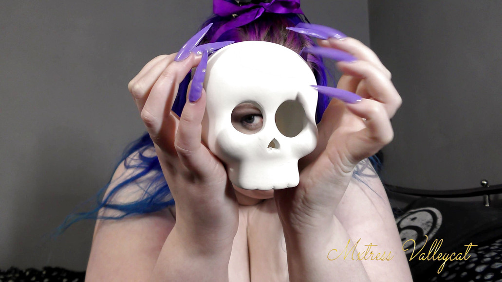With my long lilac nails I tap out some tantalizing ASMR tones on a cute ceramic skull... I bet you wish it was yours don't you?