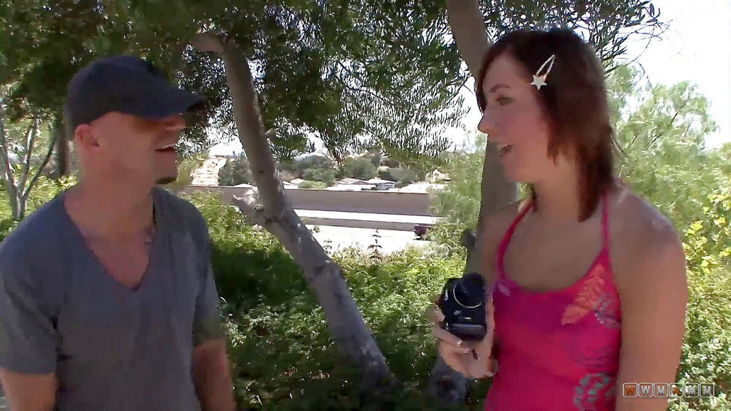 Sexy tourist girl stopped by two guys on the street to help her take some photos. She was a real porn fan and they happen to be a porn stars.